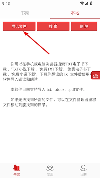 可导入手机上的txt、pdf、docx文件。