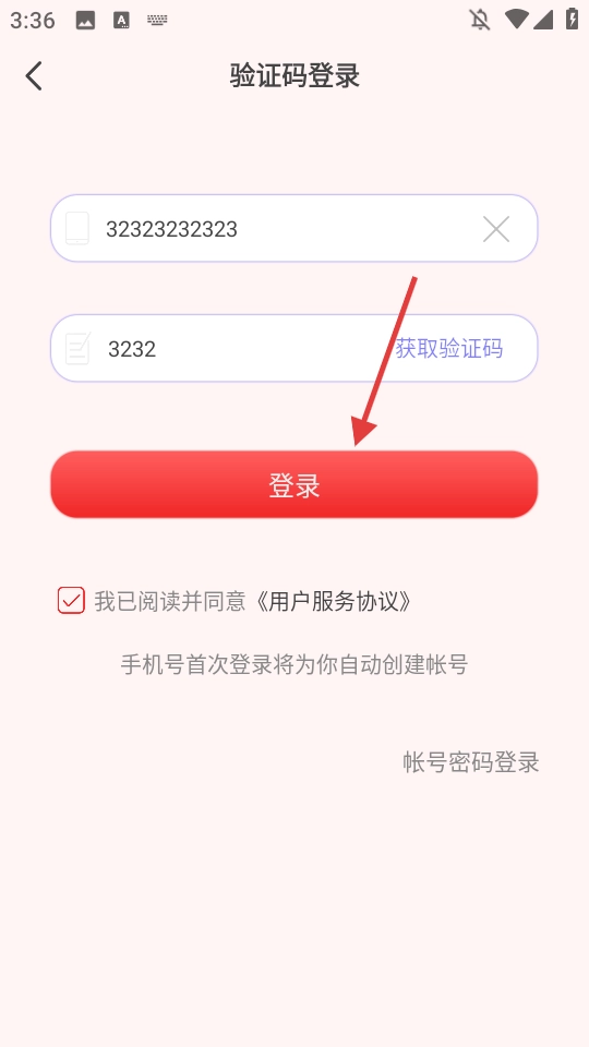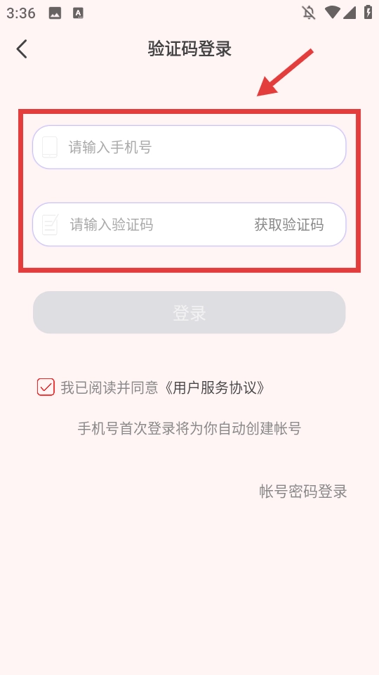 3、进入验证码登录界面,填写手机号码以及接收到的验证码。