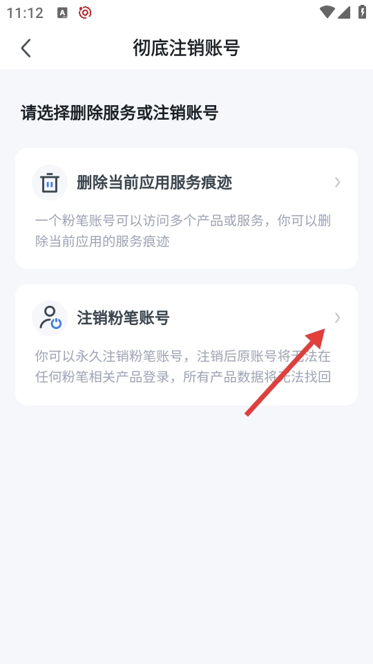 4、进入彻底注销账号的页面后,可选择【注销粉笔账号】选项,一旦注销该账号将无法进行找回操作。