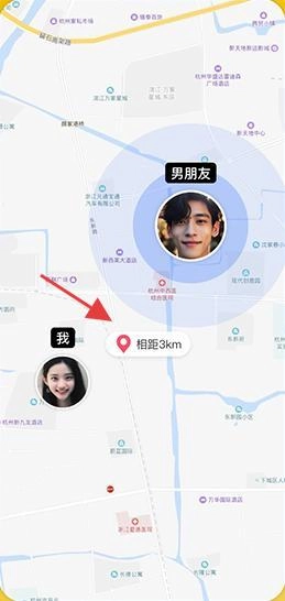 2、点击【定位守护】,可查看与伴侣的位置距离信息。