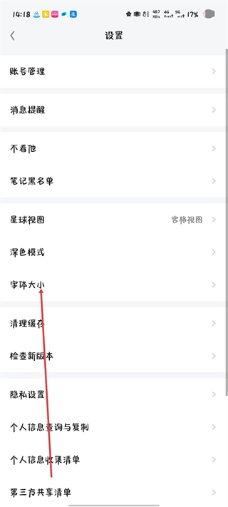 3、进入设置页面后,找到字体大小的相关选项并点击,即可进入字体大小的调整界面。