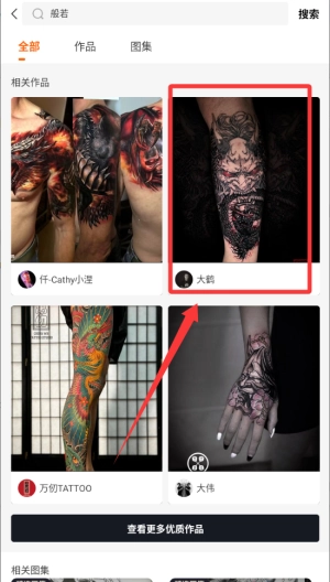 4、创作者群体庞大,汇聚了众多专业纹身师入驻,用户可直接查找原创作者,有效保障图案的来源与版权。