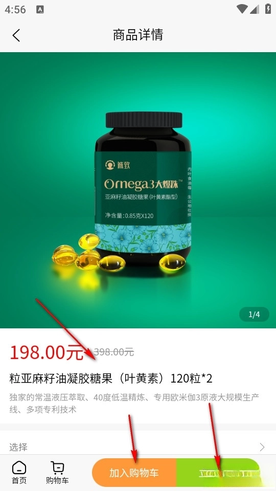 寻找到所需商品后点击商品进入商品详情页面。