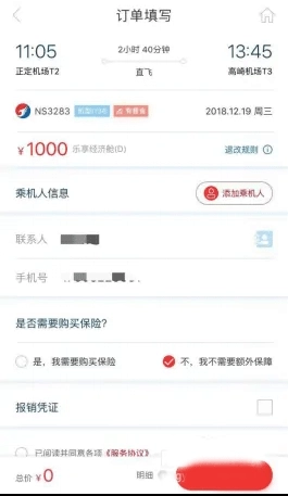 4、选择登机人,确定购买信息,务必确保您填写的信息真实、正确,以免给您的出行带来不必要的损失,然后提交订单,如果无误,完成订单,之后使用支付宝或微信支付即可。