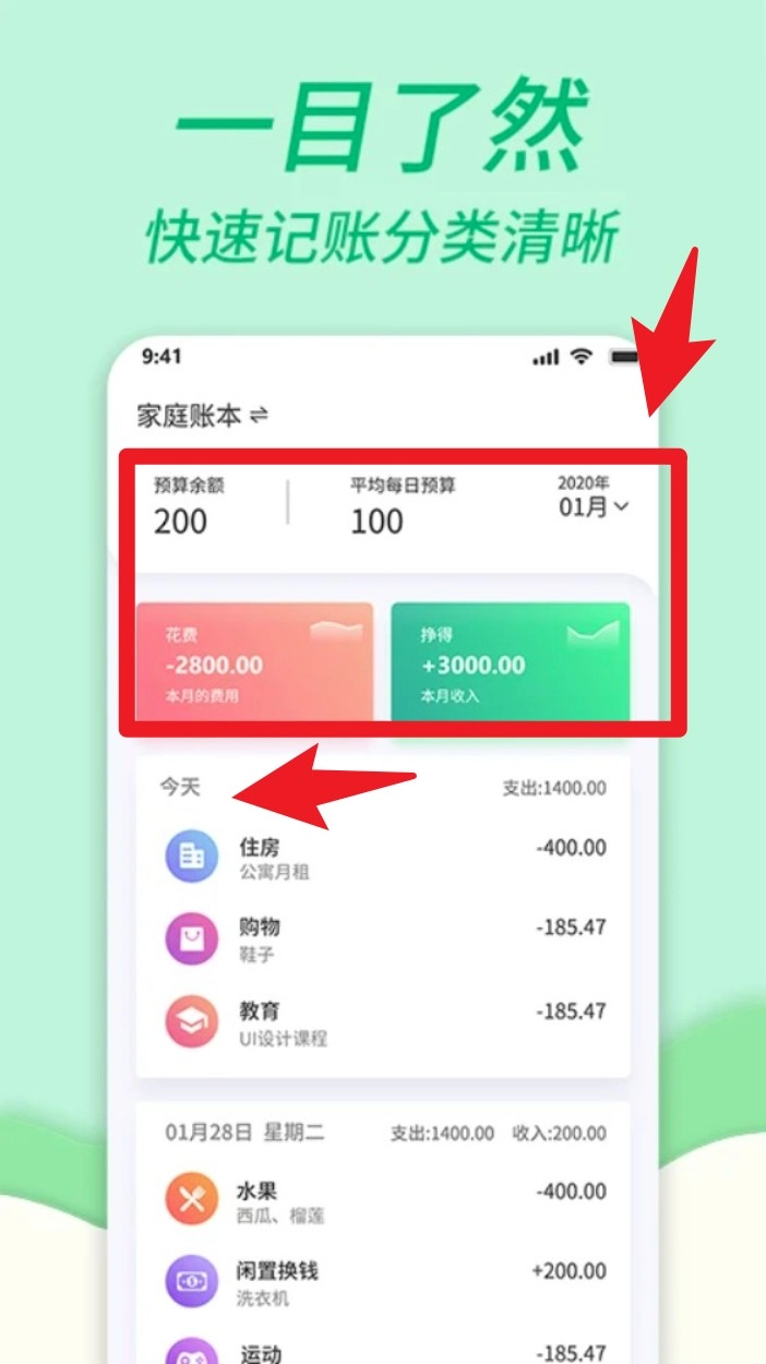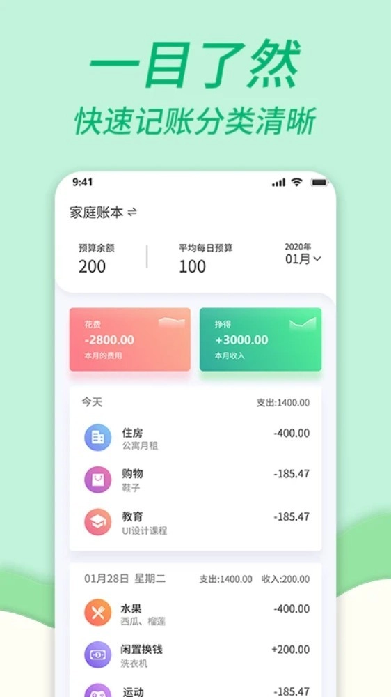 1、日常管理家庭开支的主妇,记录食品日用品采购,清晰追踪每项花费去向。