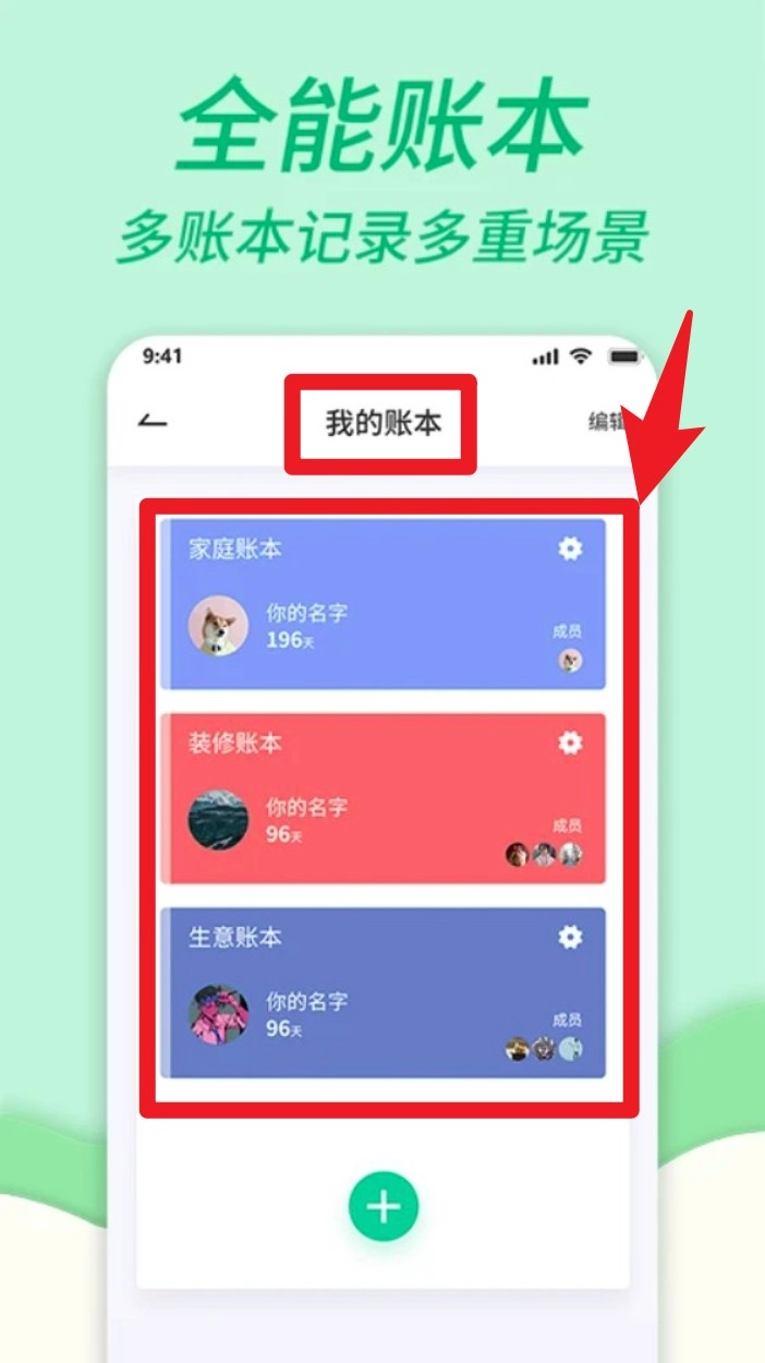 2. 成功登录后,进入“我的账本”页面,就能创建或管理多个独立账本,可用于区分家庭、装修、生意等不同记账场景。