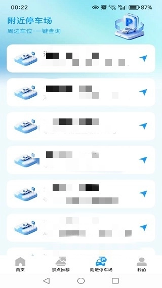 4、在附近停车场页面,及时呈现更多停车地点,结合导航功能轻松到达。
