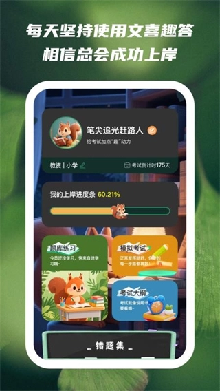 文喜趣答是一款专为应对各类标准化考试而设计的综合性智能备考工具,深度融合了海量题库练习、模拟测试与系统性自习复习等核心服务功能,该工具集成了覆盖广泛学科与考试类别的权威真题及高仿真模拟训练资源,能够满足使用者从基础练习到冲刺模考的全方位需求。