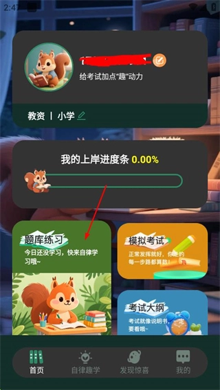 1、在文喜趣答首页点击题库练习选项,进入题库练习页面。