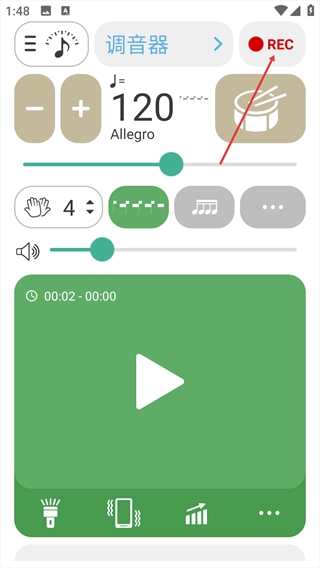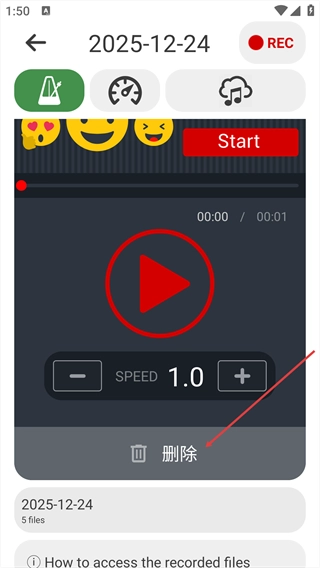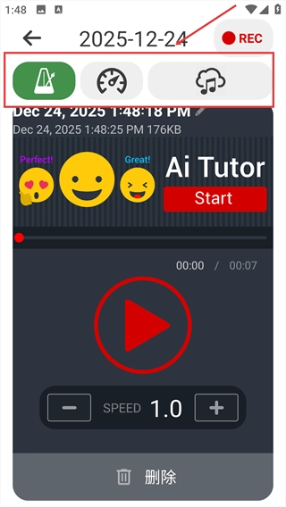 3、在录制文件管理界面,可通过顶部功能栏支持切换节拍器、测速等工具。