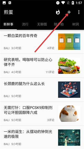 在煎蛋首页,点击右上角的【+】按钮,就能进入投稿页面。