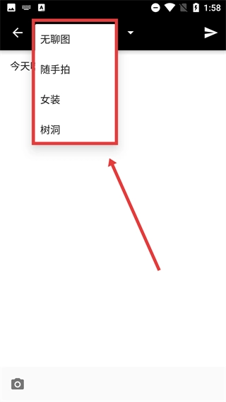 3、在分类列表里,能够挑选【无聊图】【随手拍】【女装】【树洞】这类分类来完成投稿。