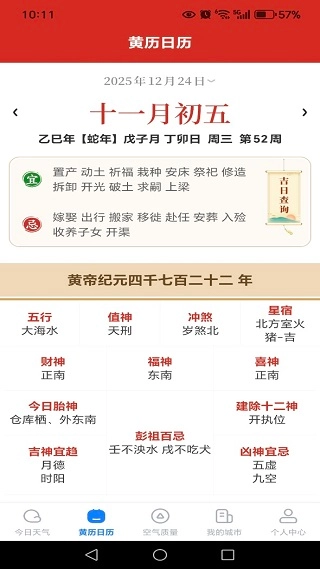 2、在黄历日历页面,了解每一天的宜忌事项等信息。