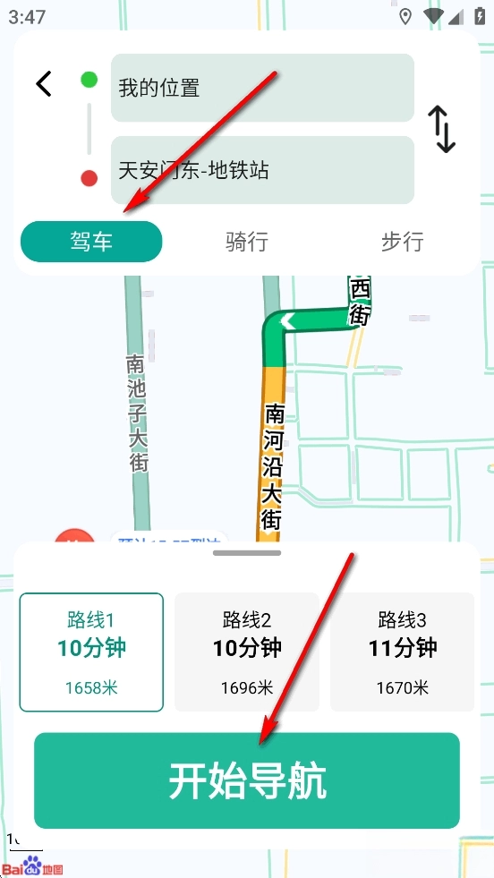选择出行方式,点击【开始导航】即可进行导航