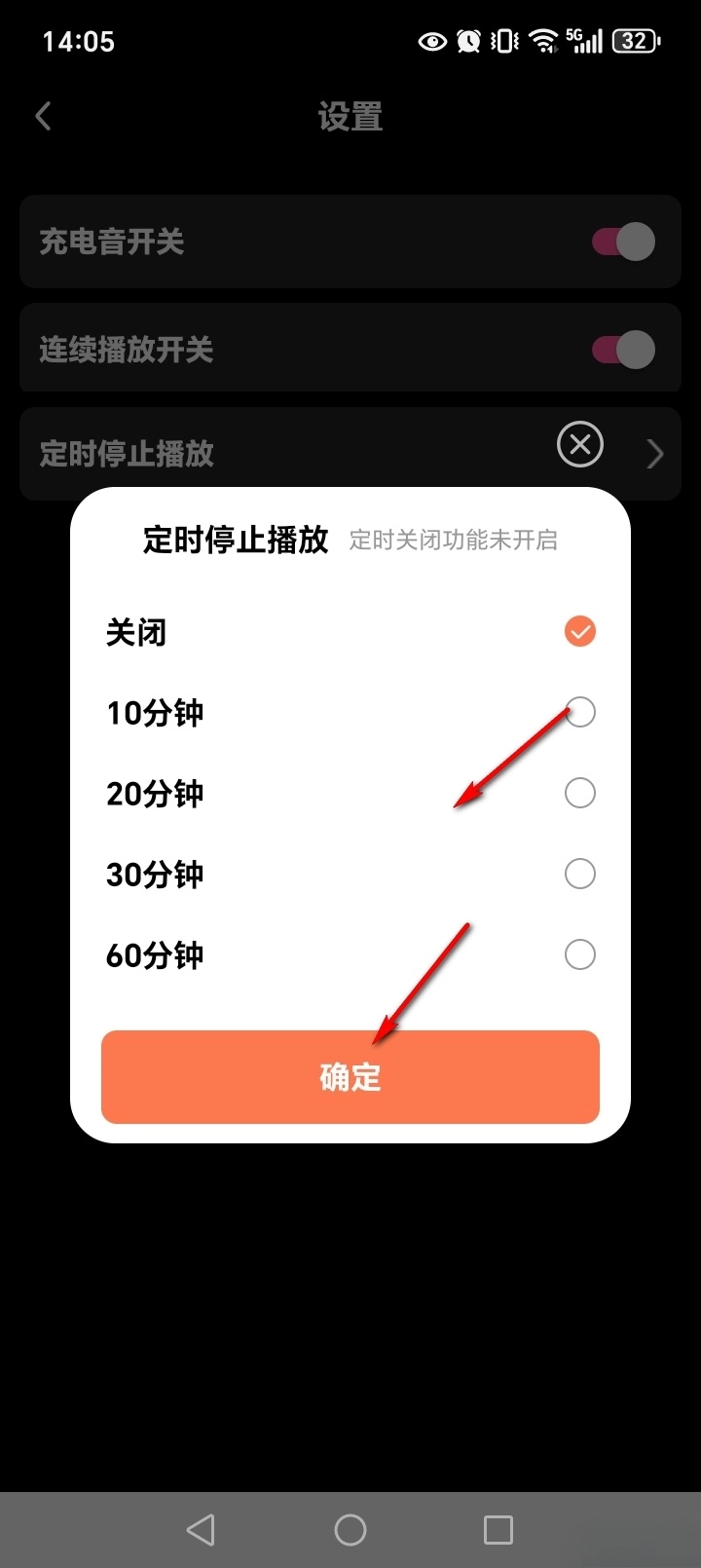 点击【定时停止播放】