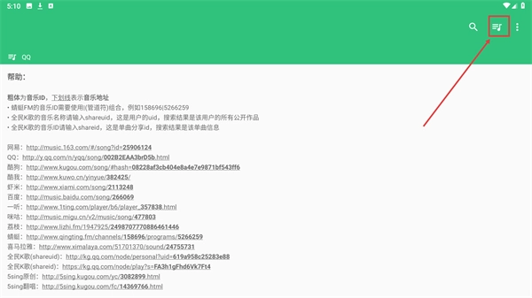 1、点击界面右上角的功能按钮,展开操作选项,可查看【音乐ID】【音乐地址】等对应规则说明。