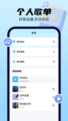 3、纯净式音乐解锁播放,创建个性化的歌单开始听歌