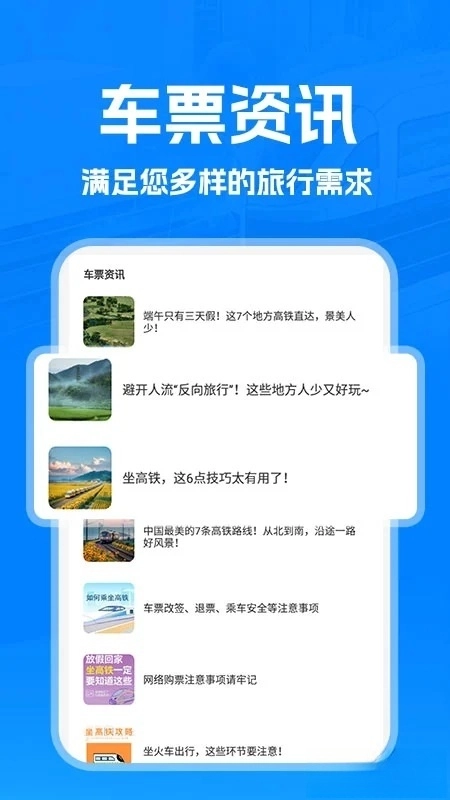 动态行程管理:集成列车正晚点查询、实时路线图、行程提醒等功能,用户可随时掌握列车位置、预计到达时间,提前规划接站或换乘,减少等待焦虑。