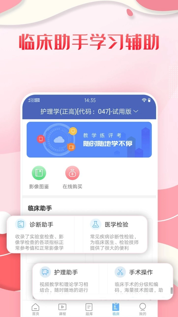 护理高级职称考试宝典是一款专为医护人员设计的备考辅助软件,拥有内科、外科、妇产科、儿科、基础护理、主管护师等核心学科内容,支持视频课程学习、模拟实战考试等多种复习方式。能为使用者提供名师直播精讲、高频错题自动标记功能,帮助考生全面梳理知识体系、针对性强化薄弱环节,为参加护理高级职称资格考试的使用者提供全面高效的学习支持。