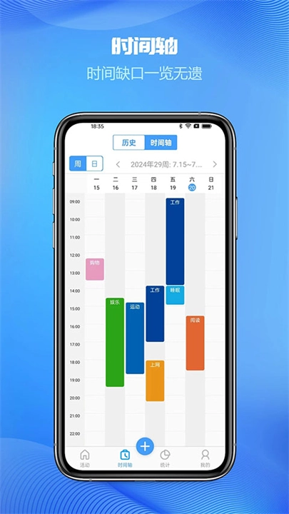 专业的时间管理类工具时间记录工具能精准统计用户日常工作和生活中的时间分布情况,轻松记录工作、交通出行、运动锻炼、用餐及娱乐等各类活动并以列表或饼状图、柱状图形式直观呈现时间分配情况,其提醒功能和定时任务添加功能可让用户在日常安排中不遗漏重要事情。