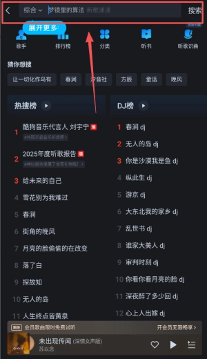 2、用户可在首页借助搜索框查找自己喜欢的歌曲或音频,直接输入关键词,就能快速定位到心仪的音乐作品,让查找过程更为简便。