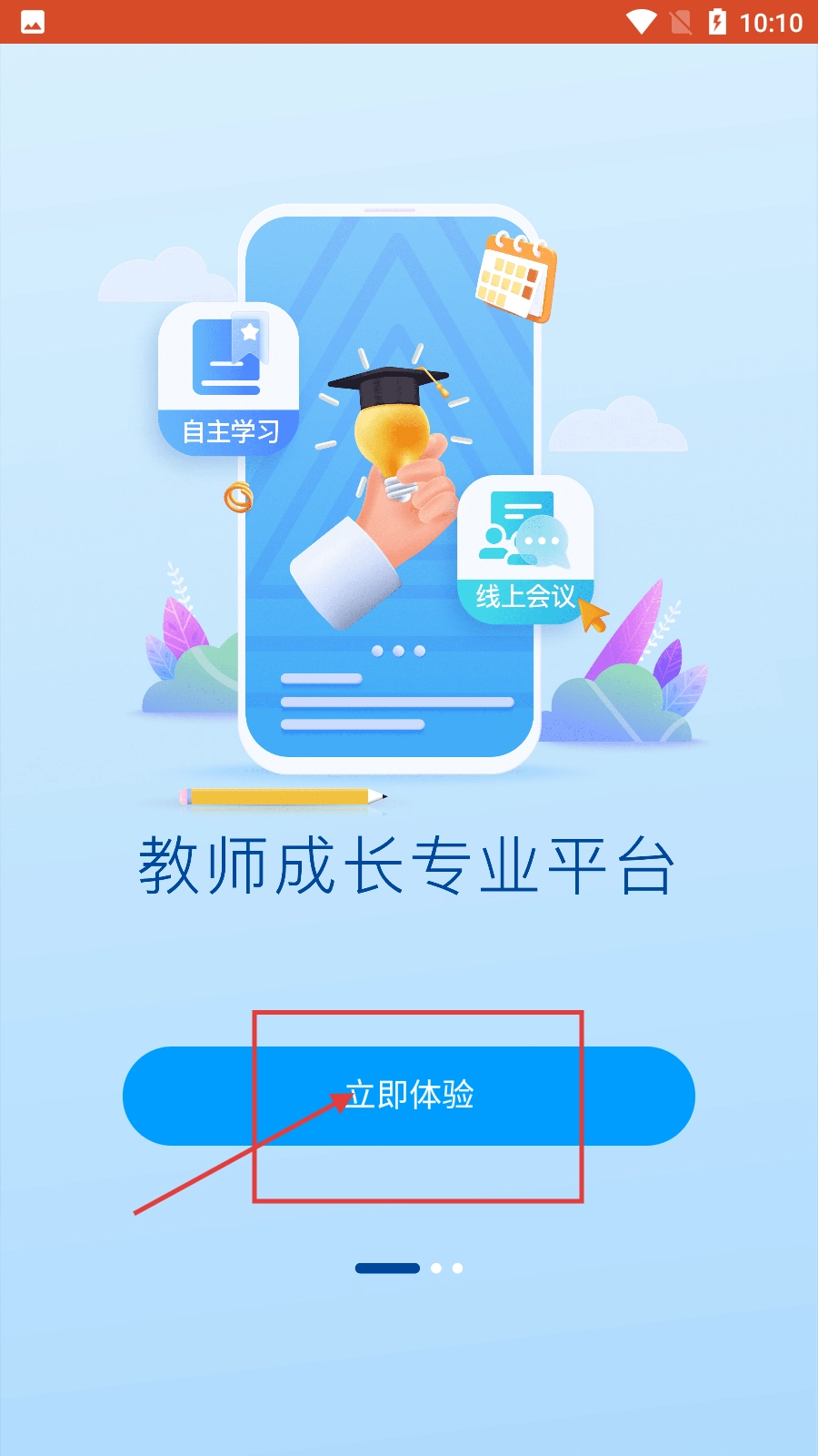 1、在教师成长专业平台的启动页面,点击【立即体验】按钮,即可进入平台首页。
