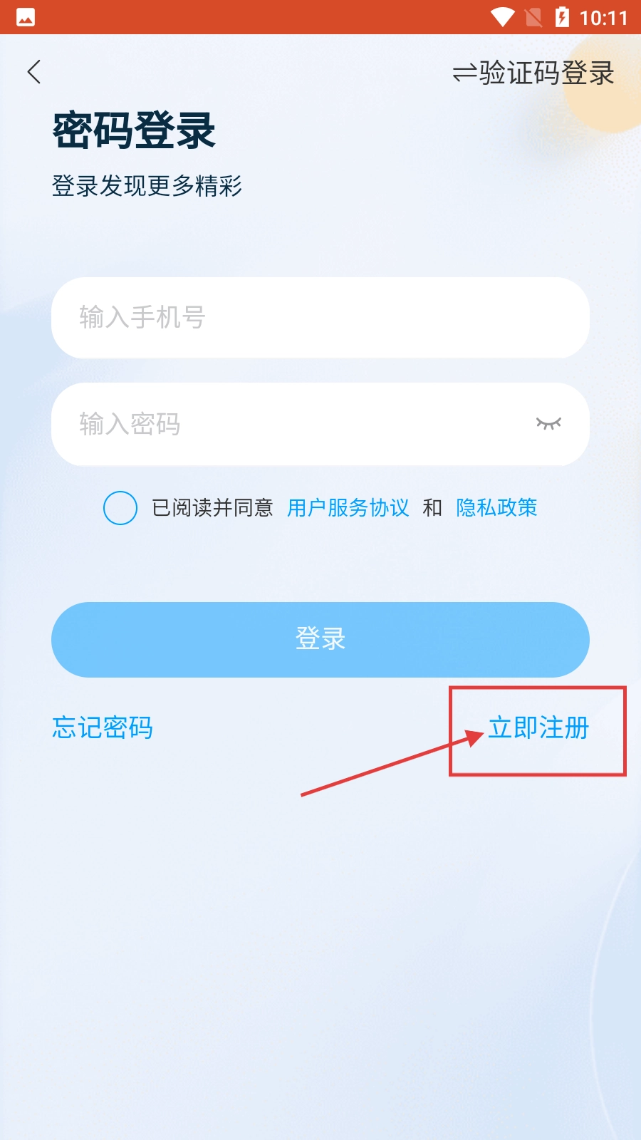 3、在登录界面,点击【立即注册】,进入注册页面。