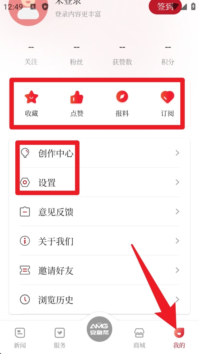 4. 进入我的页面后,你可以查看自己的收藏、点赞和报料记录,也能进入创作中心和设置界面,对个人信息以及使用偏好进行管理。