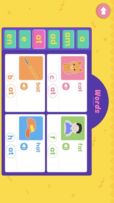 2、单词配对采用互动搭配形式,将抽象拼读规则转化为具象操作,降低英语自然拼读的学习难度。