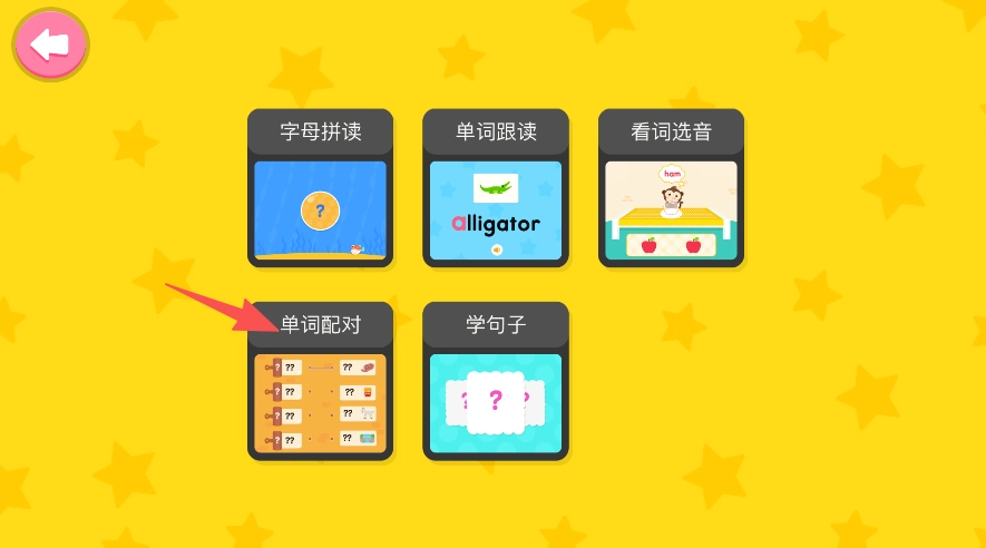 1、打开软件进入主页面,选择单词配对模块。