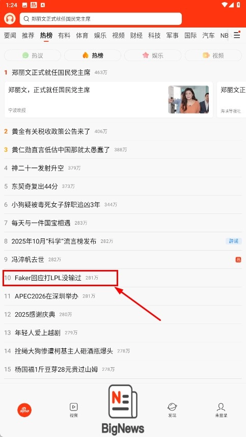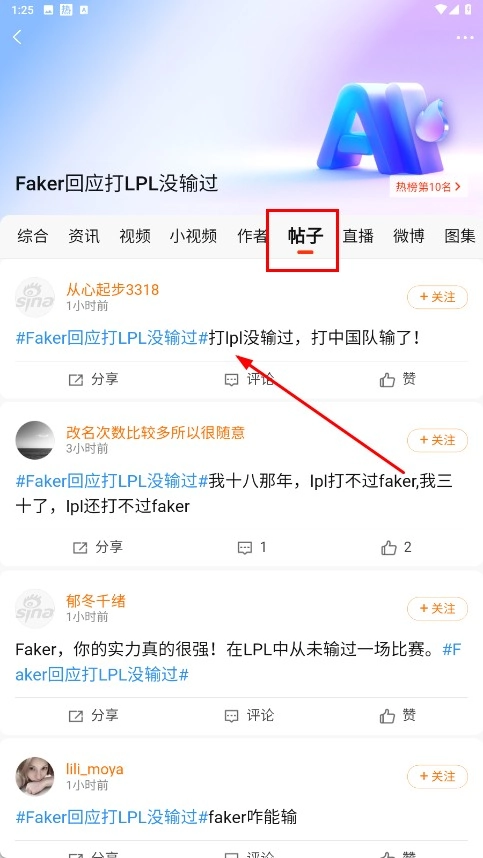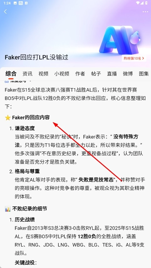 1、在热榜页面选择你感兴趣的热榜条目,比如“Faker回应打LPL没输过”,点击后即可进入对应的详情页面。