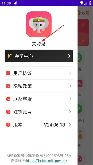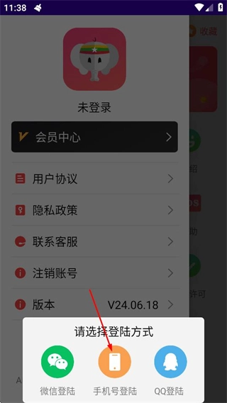 2、在侧边栏菜单中,点击未登录区域,会弹出登录方式选择弹窗。