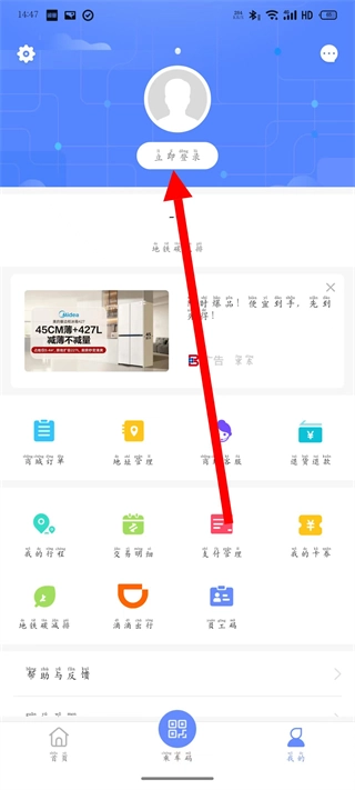 2、在我的页面,点击立即登录区域,进入快速登录页面。