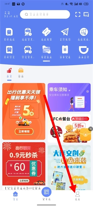 1、启动大连交通e出行应用,点击底部导航栏的“我的”选项,进入个人中心页面。