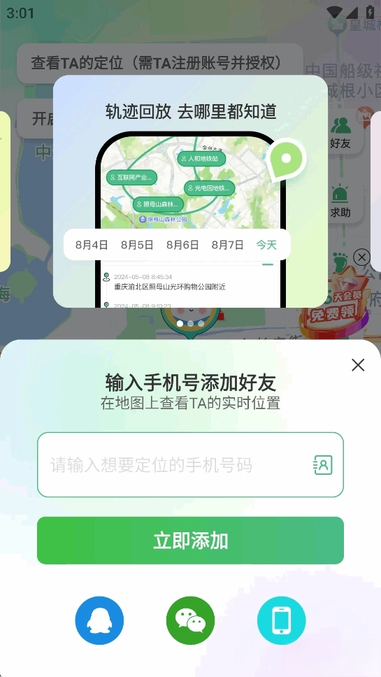 随时随地查看TA的定位,即使不在后台也能准确定位,再也不怕找不到TA在哪儿~