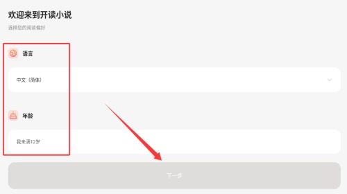 1、设置语言年龄,点击底部下一步按钮。