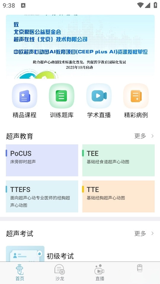 超声在线应用专为医疗工作者设计,提供超声临床诊断学习服务,用户能够在线获取丰富课程资源,通过系统学习掌握专业超声医学知识与技能,从而提升临床服务水平,应用内还包含专家直播讲座,为用户带来权威有效的知识培训,是医护人员便捷的在线学习工具。