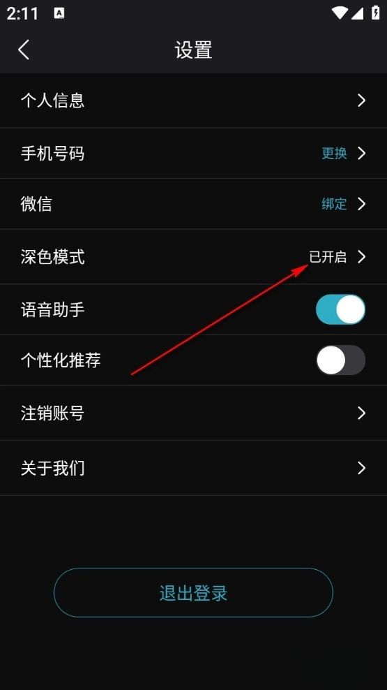 3、然后选择深色模式点进去