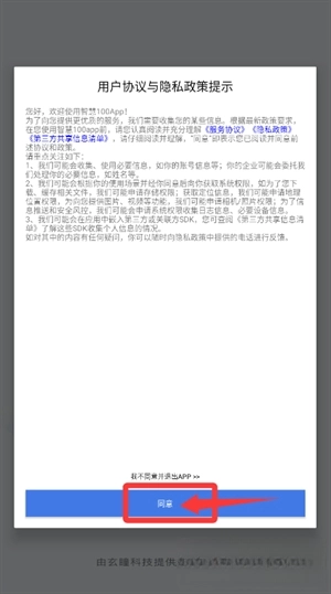1、在协议提示页面点击同意,即可进入账号登录环节。