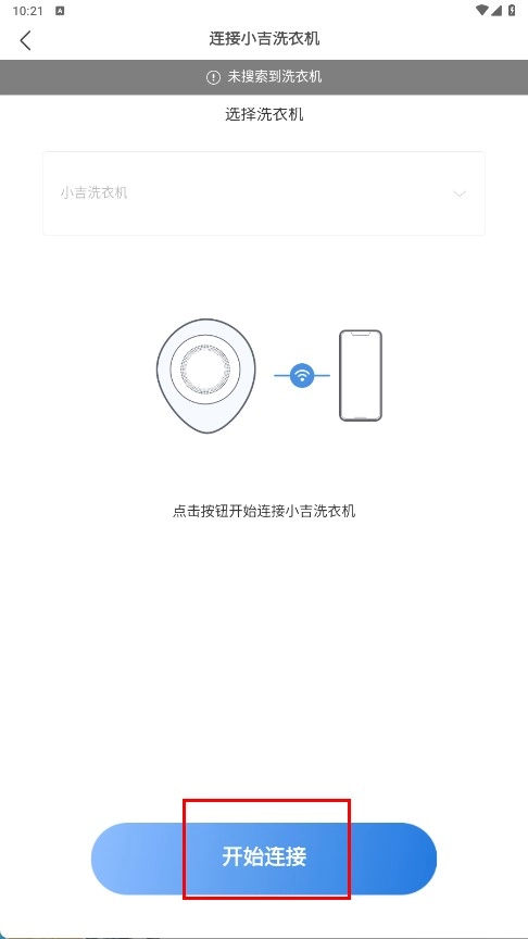 4、在连接页面找到并点击【开始连接】功能按钮,即可启动小吉洗衣机的连接流程。