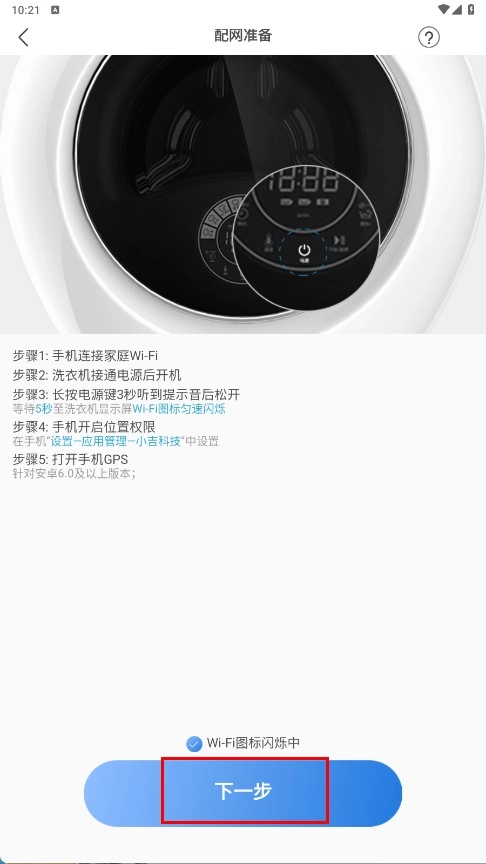 3、进入配网准备页面后,按照步骤完成操作,然后点击【下一步】功能按钮。