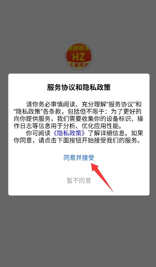 1、首次启动需点击同意并接受协议,确认后方可进入应用。