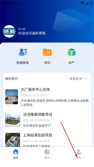 1、在诚栋家箱首页,点击底部的我的选项,进入箱房资产管理系统的登录页面。