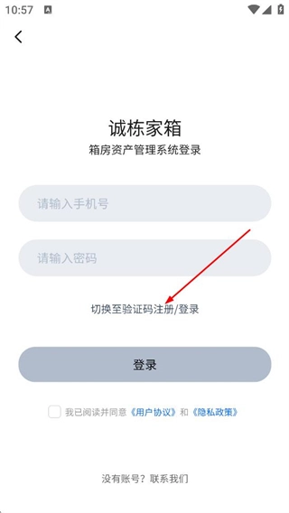 2、在登录页面,点击切换至验证码注册/登录选项,切换至验证码登录的操作界面。