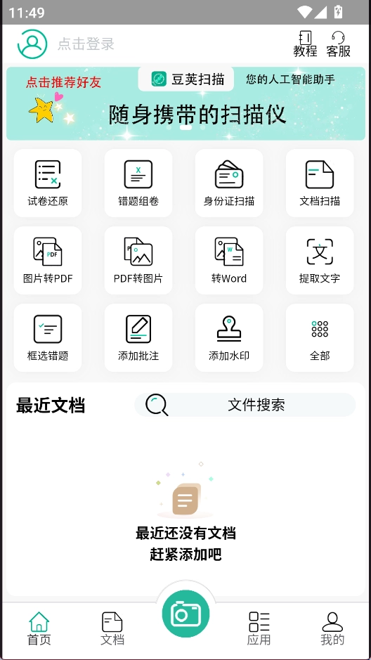 1、随身扫描仪:通过手机摄像头对准纸质文件即可自动拍摄并优化图像,去除杂乱背景和手写痕迹,输出高清的图片或PDF格式文档,方便存档或打印。
