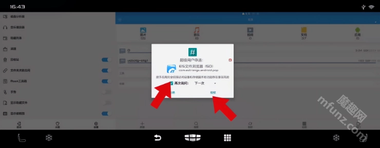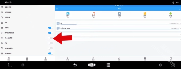 1、初次安装es文件管理器车机版软件需要打开ROOT工具开关。