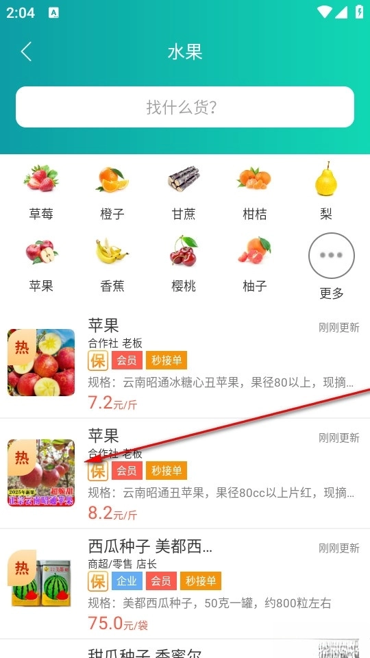 点击软件进入首页根据需求搜寻想要采购的商品。