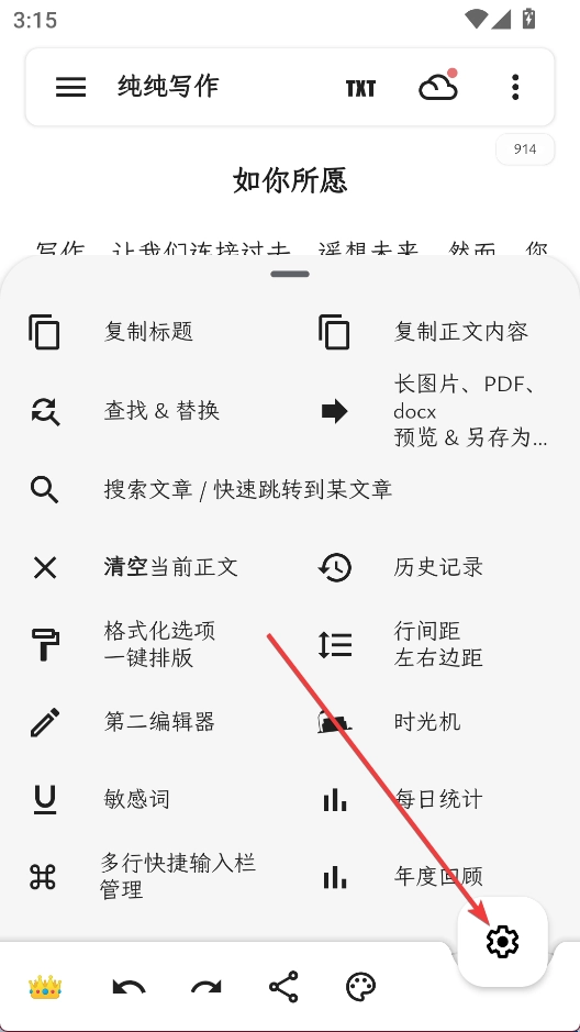 1、在写作界面点击右上角三点按钮