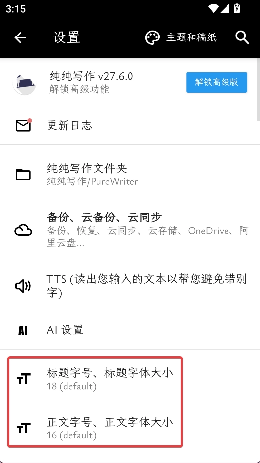 3、可以分别设置标题和正文的字号大小