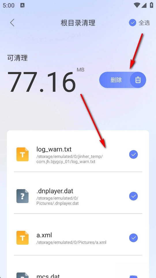 自动扫描垃圾,选择需要清理的垃圾,点击【删除】